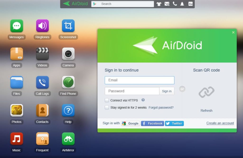 Uygulamayı yükledikten sonra, bilgisayarımızdaki Chrome, Mozilla veya Safari gibi tarayıcı programlarından herhangi biri üzerinden http://web.airdroid.com/ adresine bağlanıyoruz. Bir seferliğe mahsus mail adresimiz ile şifreli bir hesap açmak zorundayız. Hesap açıldıktan sonra uygulamanın ekranındaki QR kod ile bağlan tuşuna tıklıyoruz ve açmış olduğumuz sitede karşımızda olan QR kodu telefona okutarak eşleşmeyi sağlıyoruz.